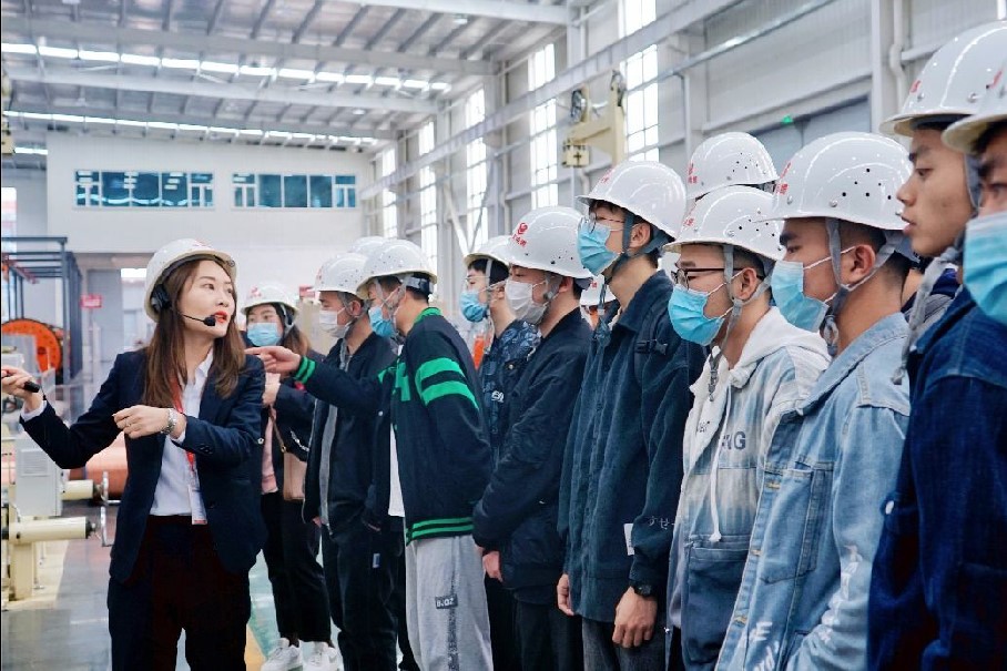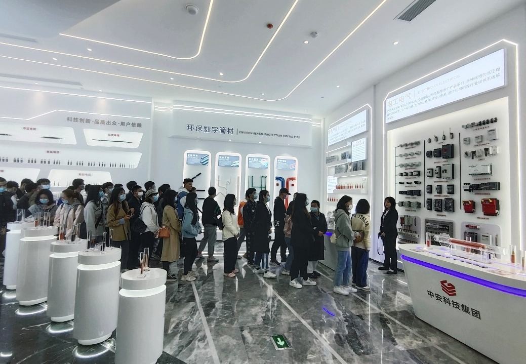 隨后,中安科技集團宣傳部帶領學生到線纜科技展廳、智能化生產車車間現場進行參觀學習。