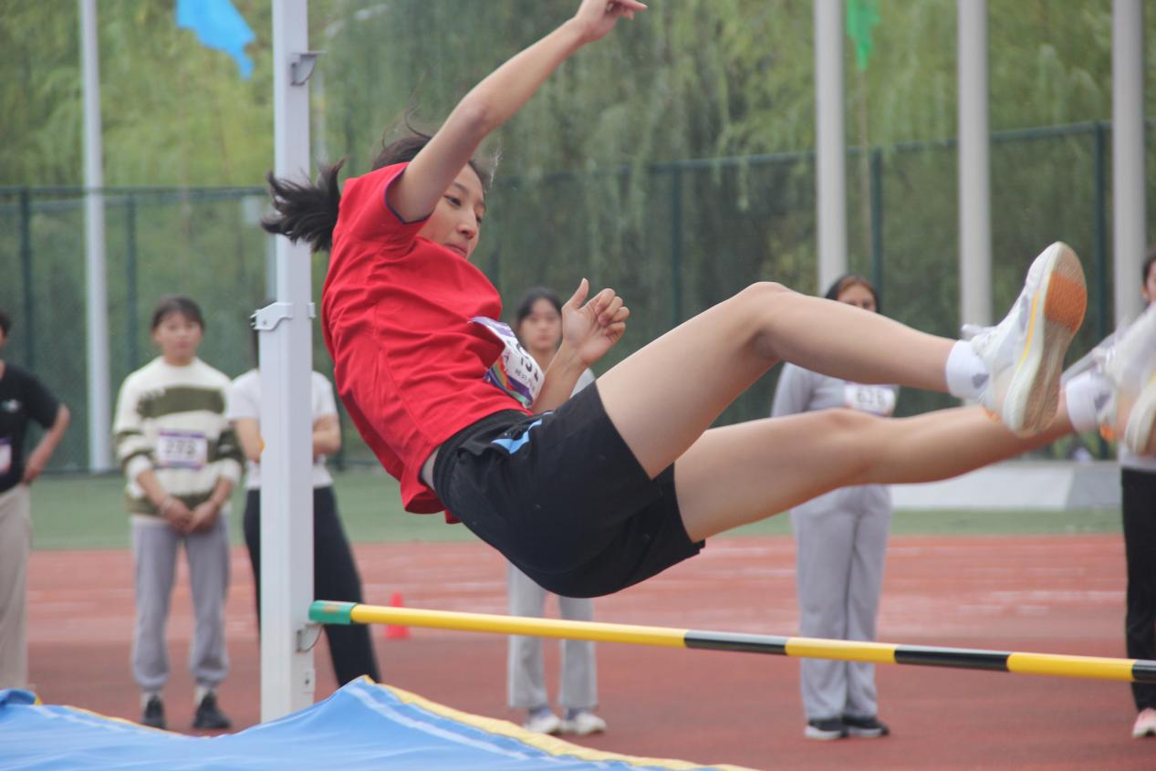 電氣類2406班郭笑在進行女子跳高比賽