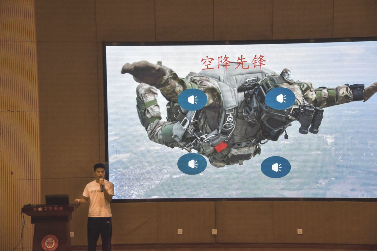 隨后,學院退役學生代表譚少君顏、梁建文、趙齊壟三人分享入伍心得。他們用自己的親身經歷,回答了“為什么入伍”及“入伍收獲了什么”兩大問題。