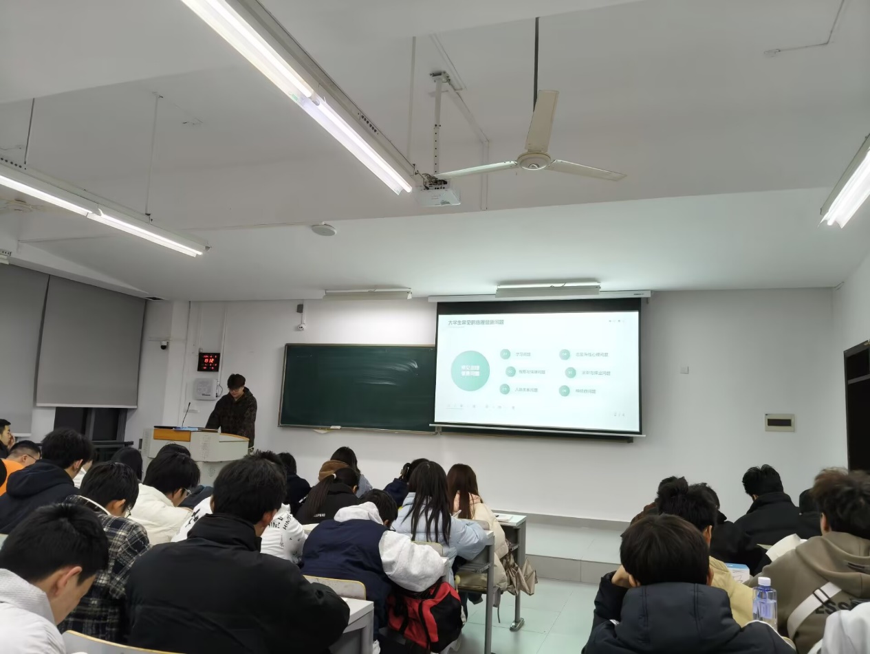 首先,徐進強作為剛剛度過新生心理調適期的大二學長,就大學生心理健康的定義、大學生常見的心理健康問題、如何關愛自我擁抱青春以及如何維護自己的心理健康進行了宣講。同時,他分享了自己在大學期間的成長故事,特別是在面對心理困擾時的應對經驗,加強心理建設的小技巧。