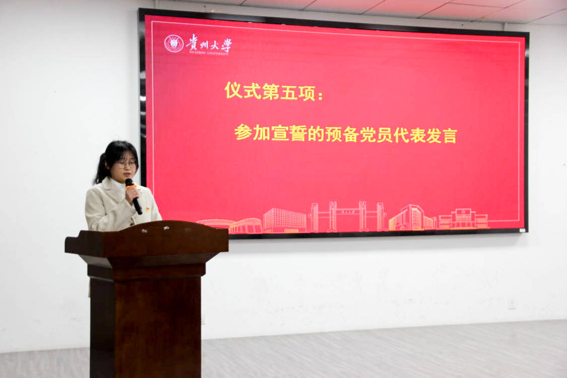 202512日下午,學院于電工樓609會議室舉辦新黨員入黨宣誓儀式。宣誓儀式由學院輔導員余紅主持貴州大學正處級組織員侯亞兵、學院黨委副書記趙曉丹、學院學生科科長、輔導員陳倩出席,2024年下半年接收的全體預備黨員參加宣誓儀式。