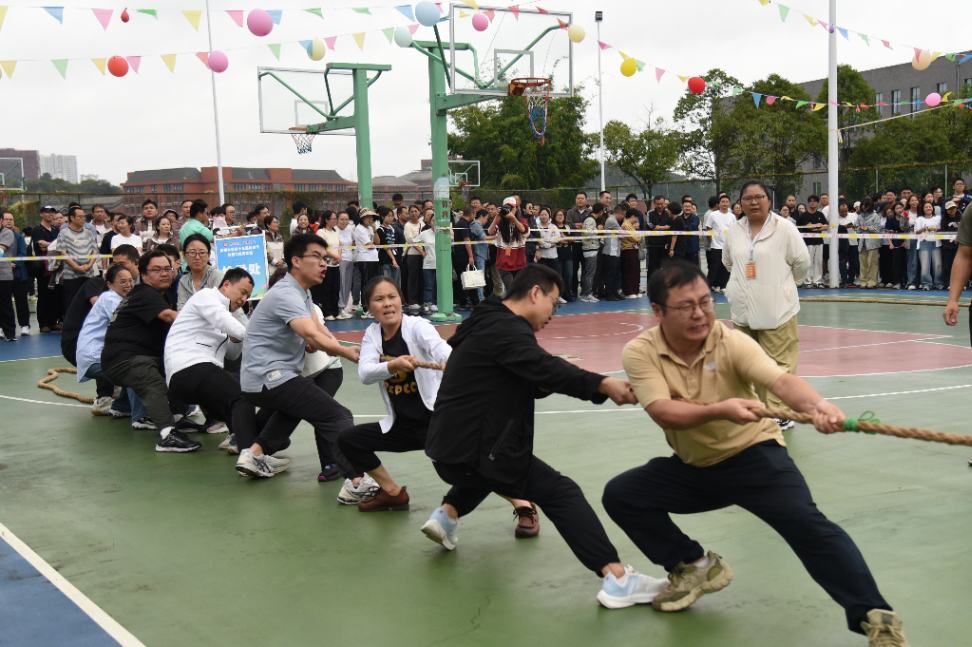 教職工拔河比賽中,學院教職工代表隊全力以赴,隊員們緊握長繩、身體后傾,在賽場展開激烈角逐。場邊的電工學子自發組成助威團,整齊的“一二,加油”吶喊聲此起彼伏,用最熱烈的方式為老師們鼓勁,賽場內外洋溢著師生同心的熱血氛圍。